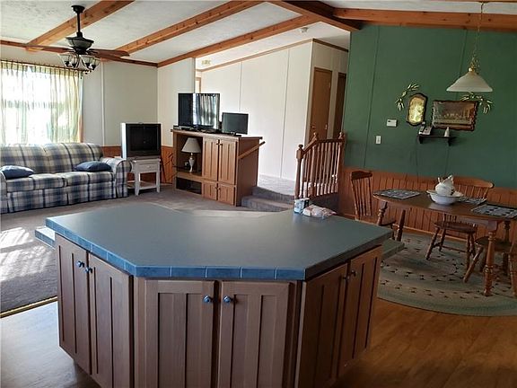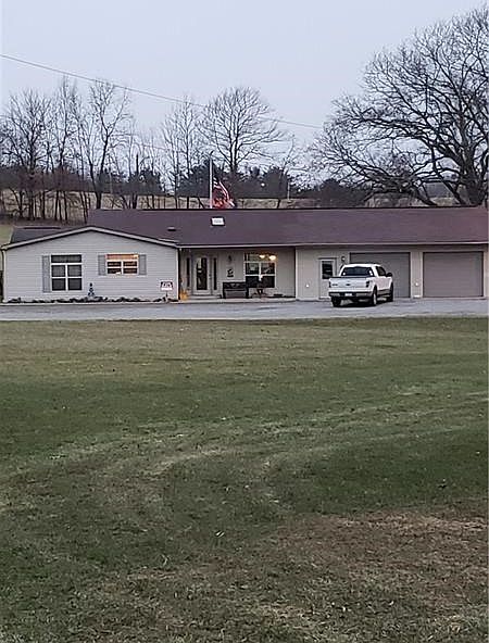 WELCOME TO ONE LEVEL LIVING IN A GREAT LOCATION. SECLUDED, YET ONLY 20 MINS TO THE CITY OF BUTLER. THIS HOME FEATURES AN OVER SIZED 2 STALL GARAGE THAT HAS A 1/2 BATH. THE GARAGE LEADS TO A BEAUTIFUL 30X20 GREAT ROOM WITH SKYLIGHTS AND DOORS LEADING OUT TO THE DECK. DOUBLE GLASS DOORS TAKE YOU FROM THE GREAT ROOM INTO AN OPEN SPACIOUS FLOOR PLAN FOR THE KITCHEN, DINING AND LIVING ROOM. BATHROOM FEATURES A DOUBLE SINK VANITY AND GARDEN TUB.