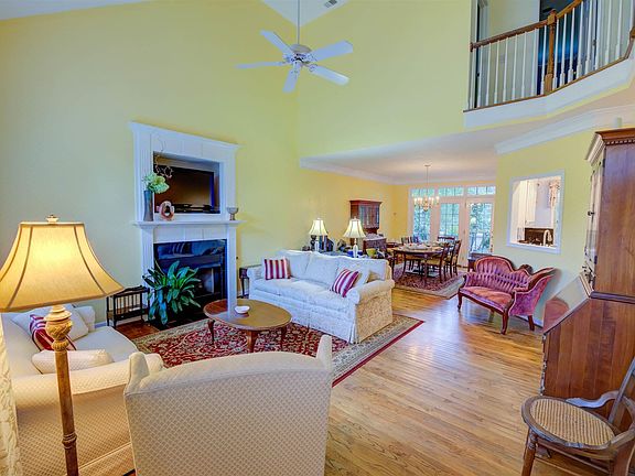 - RoomLivingRoomFeatures: Fireplace, Molding, Ceilings-Cathedral, Ceiling Fan
