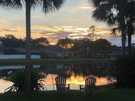 Location, Location, Location! Walk to the beach, shopping, restaurants. Whether you are enjoying company, working from home or just kicking back, you will love this open floorplan! Large south-facing, lakefront, screen-enclosed patio running nearly the length of the home. Set on a picturesque 100 x 138 beautifully landscaped lot with plenty of room for the addition of a pool. Very large parking area with oversized 2 car garage and golf cart parking. Over 2,080 sq ft of generous living space, enjoy gatherings by the woodburning fireplace or sunset views across the lake. High ceilings, crown molding, Brazilian hardwood flooring, open, light-filled spaces, breakfast nook, breakfast bar and large dining room that can also be used as an elegant home office. The master-suite has patio access, walk-in closet, double vanity, separate shower and jetted tub. The additional bedrooms located on the other side of the house are spacious with plenty of storage. Other highlights include new roof (2015), HVAC American Standard/Trane (2017). The fees are low and this friendly, convenient community awaits your arrival!