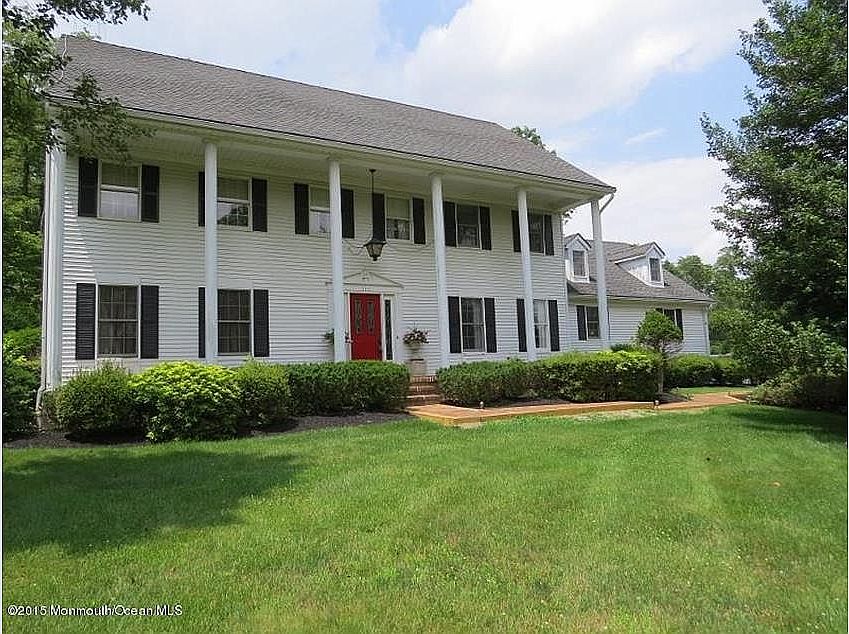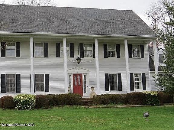 OUTSTANDING OPPORTUNITY CONTACT OWNER DIRECTLY AT 908-890-4590. Stately traditional center hall colonial complete with front porch, for sale in East Freehold. Main floor includes spacious kitchen/family room combination, separate dining room, huge formal living room with French doors to family room, laundry room and powder room. Numerous closets and additional storage. Second floor includes Master bedroom, with 2 walk-in closets and master bath with soaker tub, 2 sinks, and stall shower. Three additional large bedrooms, closets and hall bathroom. Pull down steps to huge stand up, unfinished attic. Basement finished with built in bar and more storage area. Outside backyard boasts multiple patios in a parklike setting with privacy and mature trees. Oversized 2 car garage with additional storage area. Currently has tenant family under lease until March/April 2021 DON'T MISS THIS ONE!!!! Property sold as is. NO REALTORS PLEASE. SHOWN BY APPOINTMENT ONLY. CONTACT OWNER DIRECTLY AT 908-890-4590!!!!!!!!!!!!!!!!!!!!!!!!!!!!!!!!!!!!!!!!