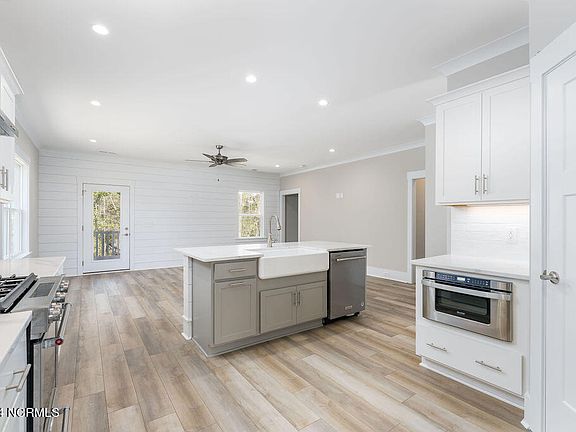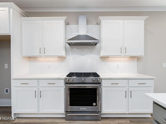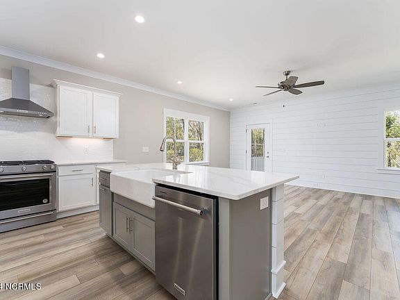 Are you looking for a spacious BRAND NEW home in the desirable Scotts Hill Loop Road area? Welcome home - this quality new construction was just completed and is ready for move-in! The craftsmanship, custom features, and high-end finishes are sure to impress! You'll appreciate the first floor master bedroom, open floorplan, LVP flooring throughout the living areas, luxurious tiled bathrooms, coffered ceiling in the dining, shiplap wall accents, elegant trim and moldings, and so much more! The chef's kitchen feautures Kitchenaide stainless steel appliances, gas range with exhaust hood, quartz countertops, shaker style cabinets, custom tile backsplash, oversized kitchen island with gorgeous farmhouse sink, and a large pantry for added storage. The master suite includes a large closet with custom shelving and luxurious bathroom with double vanity & walk-in tiled shower with rain head! Unique touches include a tankless hot water heater, Cat6 wiring, upgraded lighting, and pre-plumbed for reverse osmosis water purification system. With 5 spacious bedrooms and 3.5 bathrooms, the home is designed to give flexibility in use such as multiple guest rooms, a home office, fitness area, and/or a media room! Storage isn't a problem either with multiple oversized walk-in attic areas and a finished 2 car garage. If you enjoy relaxing outside and taking in the tree lined street and half acre wooded lot, you have the choices of an expansive front porch, screened back porch, and back patio! Inlet Park is a desirable established neighborhood with no HOA and walking distance to the Intracoastal Waterway, Sailfish waterfront restaurant, and Marsh Creek Marina. Conveniently located just north of Porters Neck shopping but over the Pender County line for lower taxes and desirable Topsail school district - this home has it all!