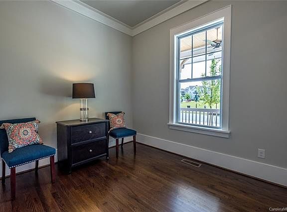 This Craftsman style home offers the master bedroom on the main level with three bedrooms, two bathrooms and a second living space upstairs. Located on Harris Green with beautiful views of the pocket park from your front porch. An open floor plan perfect for entertaining. This floor plan includes 10' ceilings and 8' interior doors on the first floor. You won't want to miss the fit and finishes included in this home, site finished hardwood floors and crawl space construction. Planned amenities: clubhouse, fitness room, playground, pools and river trail.