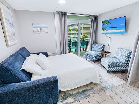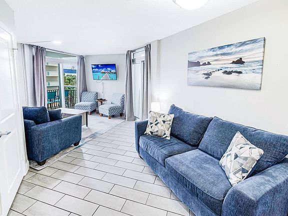 Experience the perfect blend of relaxation and adventure at this stunning Oceanview Paradise condo, located just steps away from Myrtle Beach's best attractions. Whether you're here to hit the greens at world-class golf courses, participate in thrilling softball tournaments, or simply soak up the sun on the beautiful beach, this 900-square-foot 1-bedroom, 1-bathroom condo is your ideal home base. The condo comfortably accommodates up to 8 guests, featuring two beds in the bedroom, a queen sleeper sofa, and a full sleeper loveseat in the living area. Enjoy the refreshing sea breeze from two balconies, one with a partial ocean view and the other overlooking the boardwalk. Dive into relaxation at the resort, which boasts a large pool, a hot tub, a lazy river, and a splash area for kids. Enjoy the tranquility of the adults-only hot tub and fire pit in the landscaped area, perfect for sunbathing or unwinding after a day of activities. A fully equipped fitness center is available on-site to help you stay active during your stay. The condo comes with all the kitchen essentials you need, including plates, silverware, pots, and pans. Enjoy the convenience of having a full-size washer and dryer right in your unit. Take advantage of free parking in the secured garage just a block away. Pets are welcome with prior approval and an additional pet fee. Enjoy the convenience of being within walking distance to major attractions, including the Carolina Country Music Fest, Sky Wheel, The Sling Shot, and an array of restaurants and shops. The vibrant Boardwalk, Broadway, and Barefoot Landing are just moments away, offering endless entertainment options for you and your family. The property is smoke-free, including balconies, with a $250 fine for any violations. Check-in time is 4 pm and check-out time is 10 am. Late check-outs may incur a fee unless previously arranged. The maximum occupancy is 6 guests, and no parties or events are allowed without prior approval. Guests are responsible for any damage or theft that occurs during their stay. A starter set of essentials is provided, including towels and linens, but daily housekeeping is not included. Return all vehicle tags, pool bands, and access cards for the building garage at the end of your stay. If the access card is lost, there is a $25 replacement fee.