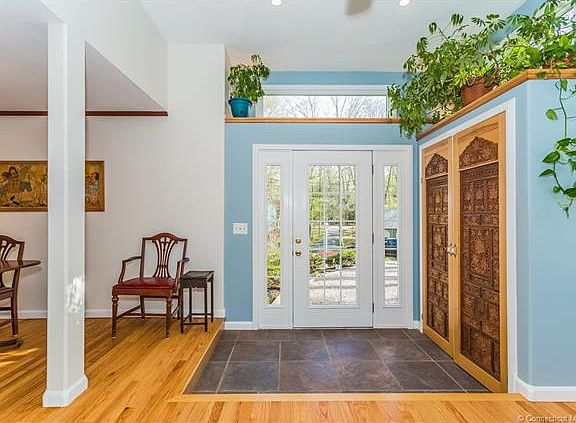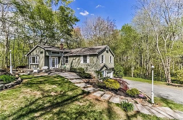 You just have to walk through the front door and you enter an open space with large windows overlooking the woods, dramatic ledge outcropping, and a welcoming wrap-around deck. The kitchen is a cook's dream, ready for friends & family to enjoy. Move right into this high-ranch home ideally located just north of the Post Road, set back from the road in a welcoming subdivision. It showcases the many attributes of an open floor plan. Designed to maximize the square footage, the interior is flooded with natural light all around as you start in the living room with vaulted ceiling into the dining room, designed to accommodate the coziest of parties and the largest of gatherings, fireplace situated in the center of the space for keeping warm on the coldest of evenings, and the updated kitchen with granite counters, butcher block island, high-end appliances, creative custom lighting and lots of storage will not disappoint even the savviest chef. Recently refinished hardwood floors are throughout the main level. The finished basement features a family room, plenty of built in storage, office or additional bedroom, full bath, and 1 car garage. The lower level is walk out from front and back. An additional detached 2-car garage is outfitted as a shop and a handyman's dream come true. The yard, professionally landscaped with beautiful stone walls and an outside fireplace. Too many details to include, come and see for yourself! Convenient to downtown, schools, I95 and RT 80.