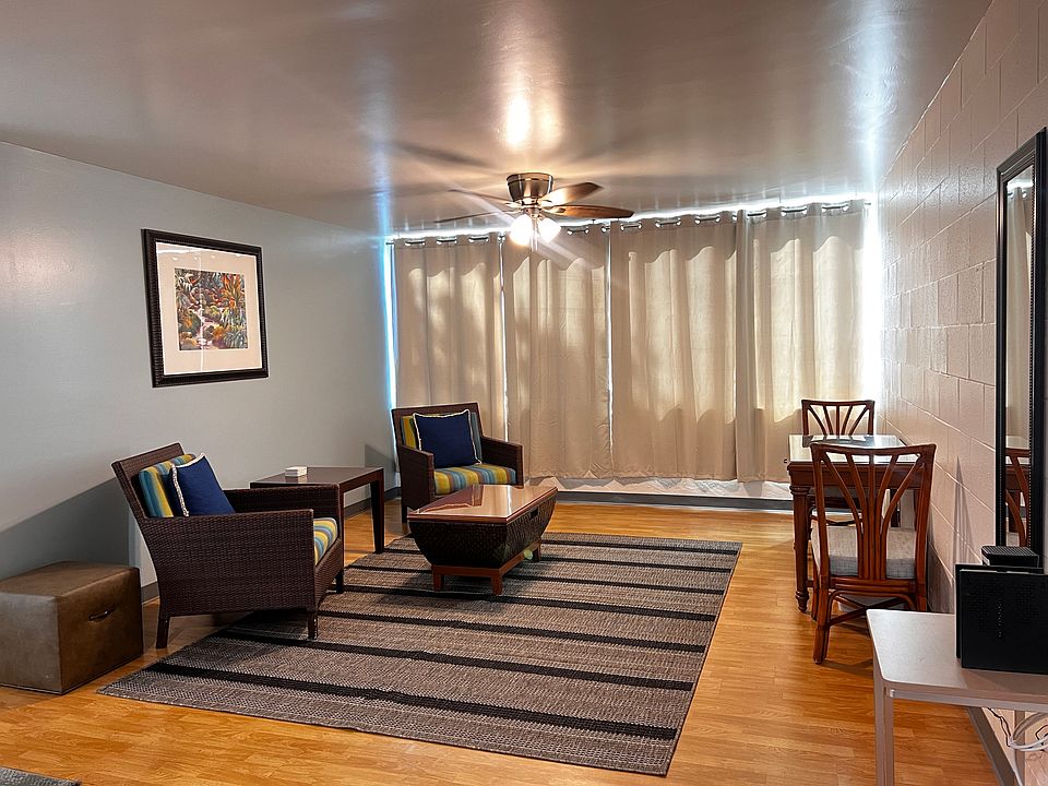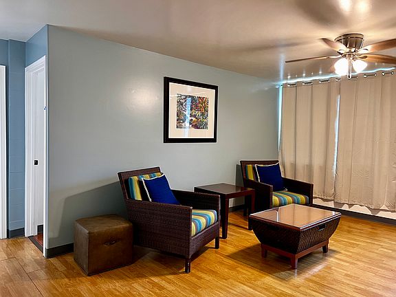 Furnished ground floor unit in Harbor Lights complex. Rents is $2650+GET per month. Mid-term rental and long term rentals welcome! Available September 1. One parking space. Interior just updated! Fresh paint, new light fixtures, ceiling fans, bathroom vanities. 2 roomy bedrooms. Bright interior with lots of natural lighting. Across the street from the ocean. Conveniently located next to UH Maui College & farmer's market, hospitals, Maui Memorial Medical Center, Whole Foods, shopping. Security, pool, grassy playground area and basketball hoops. Community laundry rooms. Vacant and easy to see. $25.00 non refundable application per adult applicant/occupant Utilities: Electricity capped and see below Utilities for details Internet included. Water included. Electricity capped up to $75/month included. Tenant responsible for amount above $75. Rent $2650+GET/month Cable not included.