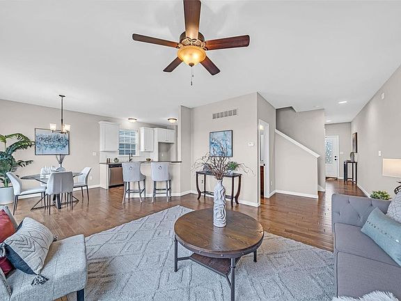 This charming 3 bedroom, 2.5 bath, 2-story home offers 1,629 sq. ft. of living space in the sought after Cottleville area, within the highly rated Francis Howell School District. The main floor features 9’ ceilings, engineered hardwood floors, and a professionally painted interior. The spacious living room includes a ceiling fan with light, while the breakfast room offers a sliding glass door leading to a patio and a level, fenced backyard. The kitchen is equipped with granite countertops, a ceramic tile backsplash, a breakfast bar, and stainless steel appliances including a gas stove. A convenient half bath with an adult-height vanity completes the main floor. Upstairs, the primary bedroom boasts a ceiling fan, walk-in closet, and en suite bath. Two additional bedrooms, a laundry room, and a lower level with an egress window, rough in for a bath, and sump pit complete this lovely home.