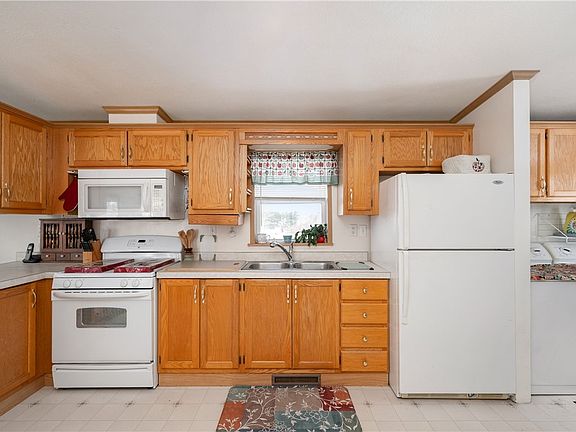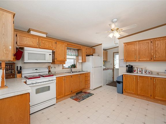 This three-bedroom, two-bathroom ranch home is nestled on just under half an acre in a peaceful country setting. Designed for easy one-level living, the home features an open floor plan that seamlessly connects the living, dining, and kitchen areas, creating a spacious and inviting atmosphere. The integral garage provides convenient access to the home, and the front porch and back deck offer great spaces for outdoor relaxation. Inside, you'll find plenty of storage throughout, including generous closets and additional well planned space in the basement. The basement also includes a kitchenette and a tornado room for added safety. A paved driveway leads to the home, and a shed offers extra storage for tools or equipment. With its practical layout and peaceful surroundings, this home is perfect for those seeking a comfortable, low-maintenance lifestyle in the countryside.