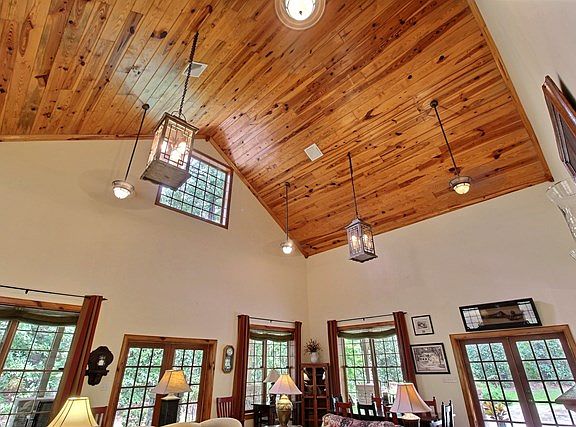 This beautiful house sits on 2 private wooded acres at the end of a cul-de-sac. You climb the front steps to a welcoming wrap around porch that leads to a large patio in the back with a water feature that supports fish and is soothing to the ear. The unique wood and glass front door leads to a large expansive foyer that opens into a newly remodeled open concept kitchen. Features include leathered granite countertops, gas stove, stainless appliances and an oversized farm sink. Wide plank pine flooring throughout the house. Great room has a 20+ foot vaulted pine ceiling surrounded by windows with beautiful custom light fixtures and a gas fireplace. The master suite is large enough to have a sitting room/ TV area and the master bath is very spacious with all of the extras. Upstairs has 2 bedrooms with an extra-large Jack-and-Jill bath. The landing upstairs is the perfect place for a computer, TV or workspace. Please call agent for an appointment to view!!!