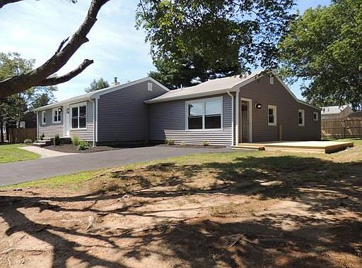Newly Remodeled oversized 3-4 Bedroom Ranch Featuring New Eat In Kitchen with center Island, white Carrera Marble counter tops and tile backsplash, new Stainless Steel Appliances with Slider to back yard, 2 full baths with custom tile tub with ceramic tile flooring. Spacious and bright Living Room and Dining room with newly finished hardwood flooring, wainscoting and crown molding. Living Room has high ceilings with French doors leading to deck. Partly finished basement with new wall to wall carpeting and recess lighting. The exterior has a new fenced in yard with two new decks and a fire pit, new vinyl siding and freshly paved driveway for 6 cars and all new windows and doors. Freshly landscaped with custom stone walkway. The house is freshly painted throughout with neural colors, all new lighting and refinished hardwood flooring, new carpeting and ceramic tile flooring. Easy highway access.