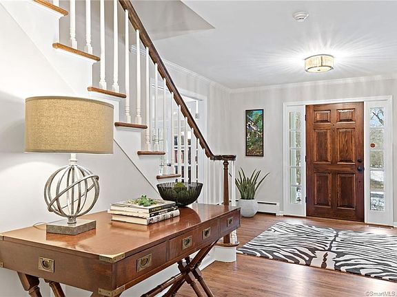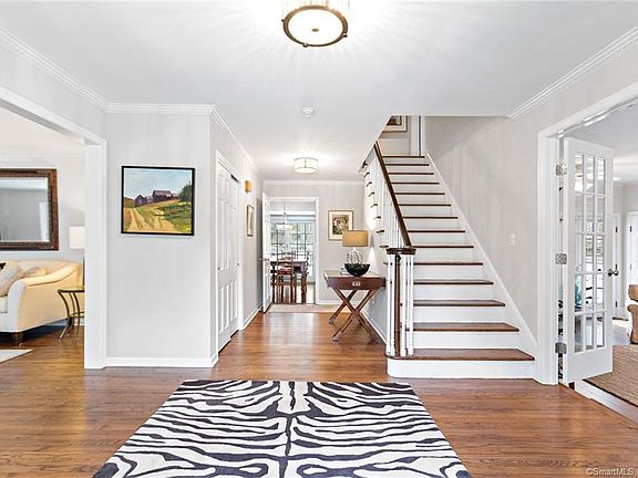 Beautifully updated 4BR Colonial in desirable Westwide neighborhood. Peaceful, park-like setting on quiet cul-de-sac. Spacious bright rooms, sparking white kitchen, wide hallways, updated baths, basement recreation room and fresh modern decor throughout. Convenient to town, train, Stamford and Scott's Corners. All new windows and doors; just refinished hardwood floors and indoor/outdoor painting. Attractive wood burning fireplace insert in living room provides clean, cozy warmth and atmosphere. Enjoy the birds, animals and nature views through kitchen French doors leading to large stone terrace for outdoor entertaining. Take a morning or evening walk or run around nearby scenic reservoir with gorgeous sunsets. Five minutes to West School; bus stops at bottom of driveway. Move right in!
