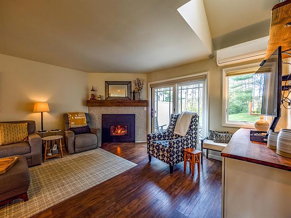 Immaculate 3BR/2BA Lakeland Village Condo located within walking distance to the Quechee Club, Lake Pinneo and all of the clubhouse amenities (golf, tennis, skiing, paddle tennis, fitness center, swimming pools, restaurants, etc.) This condo has many recent upgrades, including: Mini splits with air conditioning and heating on main floor, high efficiency baseboard electrical heating in two bedrooms and bathroom, new gas fireplace, reclaimed wood mantel and tile surround the gas fireplace, Rinnai propane heater, On demand tankless hot water heater, Flooring - slate in foyer and laminate in downstairs area, baseboard floor molding replaced, Ceiling - Popcorn removed in all rooms, Kitchen- cabinets with cabinetry to ceiling and additional island storage, expanded kitchen counter space by removing closet in kitchen, Quartz countertops, slide in range, built in microwave, tiled backsplash, door installed between living area and bedroom area for privacy, cabinetry in living area with Andrew Pearce live edge countertop, cellular shades installed on slider doors, main floor bedroom closet organizers, glass shower enclosure added in main floor bathroom, storage room lighting and electric outlets added, replaced all lighting switches/receptacles, all lighting changed to energy efficient LED, Replaced decking (TREX) and rain drainage grills added. This is a rare opportunity to own a turn key condo within one of the most highly desirable locations in Quechee.