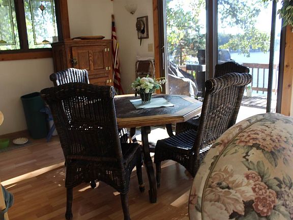 Peace & Tranquility! This 3 bedroom, 2 bath, cedar home sits atop a hill and over looks the beautiful Fish Lake. Open concept living area includes fireplace, dining room, and kitchen, all with lake view. Main floor also includes master bedroom, bathroom and laundry. A walk out deck allows you to enjoy meals outside, just off the kitchen. Upper level provides 2 more bedrooms, and a bath. Large closets and lots of storage. Balcony from upper level bedroom provides outdoor sitting to enjoy the lake. Lower level recroom walks out to porch with swing overlooking pier. Large fenced yard, perfect for pets or small children to play.
