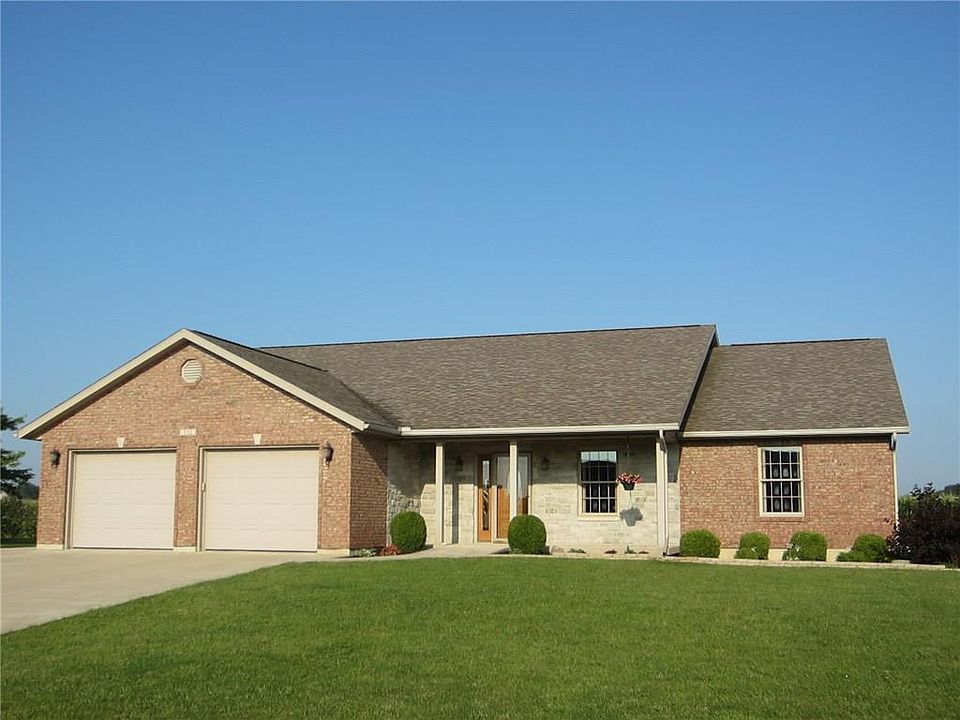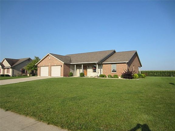 This 2107 SQ. FT. Brick Ranch built in 2004 sits on the edge of New Knoxville and has a lot to offer. The first thing you see when you drive up is the low maintenance brick exterior with stone accent on the porch area. The home is designed with no step entry into the home from the front porch, garage and ramp from rear porch. It has three bedrooms and two full baths with a laundry room attached to the master sweet area. There is a sunroom/ breakfast nook off of the kitchen facing the back yard. The home has wide halls ,doorways and steps to the full basement. Floor drains in the garage , central vac and an egress window in the basement are just some of the extra features of the home. The home is also protected by a whole house generator that automatically come on when needed. There is a 24x30 out building behind the home that is insulated with electric and a single garage door ,great shop or man/woman cave!!! Showings to begin Sunday July 30th after painting is completed.