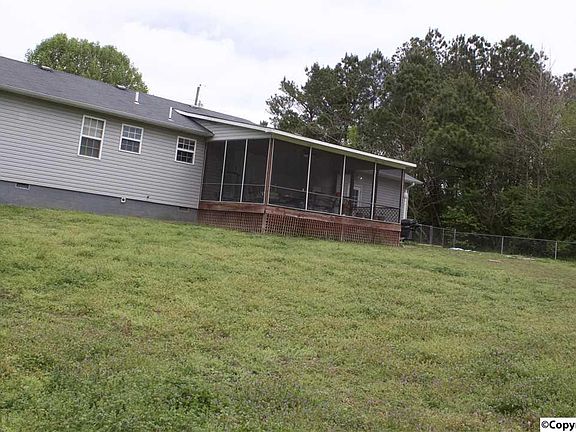Country living yet convenient to shopping, restaurants and beautiful lake Guntersville. 3 Bedroom, 2 bath home with new paint and floor covering. 12x22 Screened porch overlooking large fenced in back yard, attached 2 car garage and covered front porch.