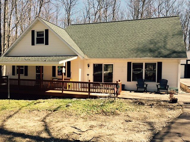 Gorgeous home in cul-de-sac near Higgins Lake. This home has four bedrooms and two full baths, all on two lots with a huge pole barn for a garage or a shop. There is a partial basement for storage and utilities as well as plenty of closets. Large eat in kitchen with island counter and dining table. Living room has a gas fireplace and large windows to let in all the natural light. Make an appointment to see this beauty today.