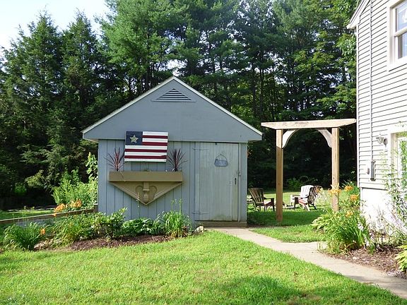 It's the attention to details like charming vinyl shakes on the front and extensive landscaping that will add to your enjoyment of this recently updated South Deerfield home. The entrance has new tile floors, new wood stairs and is open to the large living room with a gas fireplace. The kitchen is beautifully updated with tile floors and backsplash, granite countertops, and stainless appliances. With 4 bedrooms, updated 1 full and 2 half baths, gas fireplaces in both the living room and downstairs family room, a nice mix of hardwood and tile floors on the main level, stunning sunroom with 2 new sliders onto the elevated back deck, 1/2 acre yard, adorable storage shed, fire pit, small koi pond and large 2 car garage; you will not be disappointed! Easy access to Rt 116, and I-91; it's a quick commute to either Greenfield, Amherst or Northampton. Come take a look soon, this one will not last!