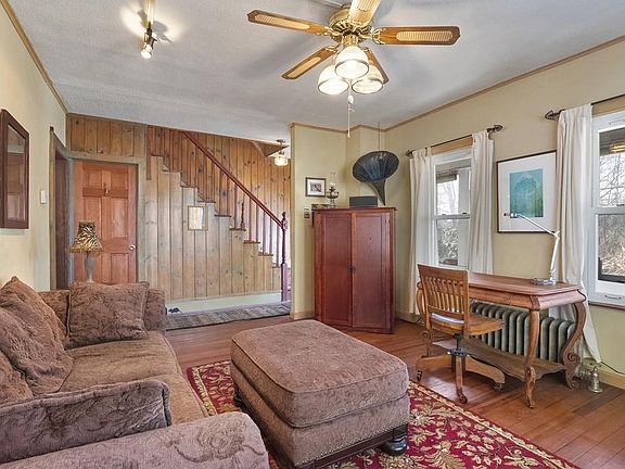 Great Pawtucketville location for this wonderful 3 bedroom 1 full-bath home with nice level lot, minutes to major routes, river walk, area hospitals, university, etc. This home has been impeccably maintained all-around! You will love the hardwood floors and generous space this home has to offer. The first floor features a large kitchen that opens up to a sun-filled dining room. You will immediately notice the stunning exposed-beam ceiling and additional breakfast bar. This home also has an enclosed porch in front and a rear mudroom that leads you to the large backyard perfect for kids, pets, gardening and more. The second floor boasts 3 large bedrooms with plenty of closet space and a full bath. This home features a detached garage and plenty of off-street parking. New roof! This home is literally a minute from the scenic boulevard yet set on a quiet side street.