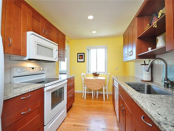 A sunny and bright 2 bedroom condo at the top of the Heritage Glen complex with so much privacy and such a beautiful view. The unit has hardwood floors throughout with some tile. It has an updated eat-in kitchen with granite counters and cherry cabinets, one of which opens to reveal a spacious pantry. There is a spacious living room and dining area that opens onto a beautiful deck. The town fireworks can be seen from this balcony without leaving your home The two bedrooms are large and both have lots of concealed storage in addition to the closets. On the outside the convenient lifestyle continues with additional parking spaces that enable you to unload groceries etc. right at the front door before you park your car in your own single garage which is also nearby. The complex has a beautiful pool and pool house which is available to the community of Heritage Glen. The complex is also located right in the center of town near the library, stores and restaurants. This condo is all ready for you to move in and enjoy No lawns to mow or snow to shovel. You need to see this one.