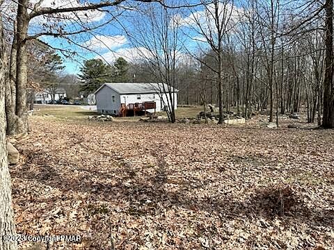 UNDER CONTRACT, ACCEPTING BACK UP OFFERS ONLY.Well Maintained Raised ranch with a peaceful wooded view on a half acre. Open concept 2 bedroom & 1 bath with jacuzzi tub and touch-less flush toilet.Large walk in shower. Master bedroom has open walk-in closet. Recessed lighting with motion sensor/programmable lights in living room and master bedroom. Newly installed water pressure tank, hot water heater, wood burning stove, stainless steel chimney, and ventilation system. Freshly painted and ready to move in. This house also has a generator hook up tied to the main electrical box.Large additional space in the Basement where W/D is located. Basement is ready to finish if you choose. Low HOA dues, $250/year.