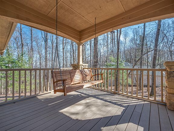 This charming home is a great example of true Carolina Mountain Arts and Crafts architecture complete with front porch swing. The unique setting is very private with plenty of mature landscaping and winter mountain views. It has a mostly open floorplan, which has wood flooring, and is perfect for entertaining. The great room with handsome stone fireplace is open to the dining area and the kitchen with stainless appliances and granite counters has a large pass through. Just down the hall is the primary suite with spacious walk-in closet. Upstairs has a large den/office or 4th bedroom with a half bath, but room to add a shower. Downstairs features a lovely family room with French door to a stone terrace, 2 guest bedrooms, full bath and large workshop/storage area. There is so much to love about this home plus the opportunity to make it your own. Champion Hills is a wonderful golf community with a vibrant social life and just 8 minutes to downtown Hendersonville.