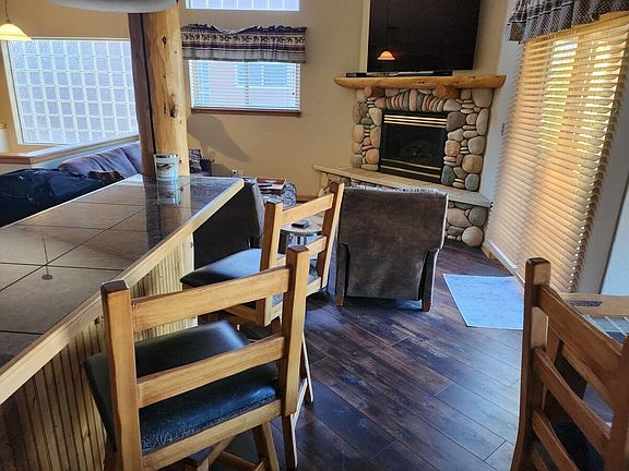 Move-in ready, fully furnished v townhouse in Dillon available in July for 1 to 6- month lease. Rate listed is for 5-6 months. Mountain Views! Walking distance to Downtown Dillon/Amphitheater as well as the grocery and other restaurants. No pets! No Smoking! This townhome is 1646 sq feet. The street level has the living room, kitchen, shower bathroom and dining room. The lower level has all three bedrooms, laundry and two bathrooms. The master bedroom has a full bath attached, a queen bed, end stands, dresser, desk, closet and balcony access. The 2nd bedroom has a queen bed, end stand, closet, dresser and balcony access. 3rd bedroom has a queen over queen bunk bed along with a dresser. The other bathroom is stand-alone. Rent includes utilities, cable, internet, garbage and snow removal The attached 2-car garage and driveway provides parking for 3 - 4 vehicles. All dinnerware, glassware, towels, blankets and bedding are included. As is a 65" LG OLED Smart TV in the living room with a Sonos Atmos soundbar. Utilities, cable and internet included. No Pets