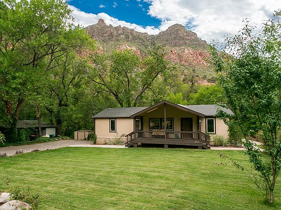 Absolutely gorgeous creekfront location!Privately protected in this coveted, gated neighborhood of more expensive homes. Beautiful deep pools & waterfalls all along your private banks of Oak Creek. Perhaps the perfect Oak Creek Cottage on the creek. Relax to the serenade of the cool, tumbling waters from your private decks. The home is perched above the creek & out of the flood zone & enjoys, red rock, mountain , creek & forest views. Updated 3 bedroom, offers vaulted ceilings in living room, remodeled kitchen, Venetian plaster walls & newer window treatments. Expansive, covered front porch with skylights is the perfect place to gaze over the sprawling green lawn and fruit trees in the front yard and up to breathtaking mountain views. Existing Association does not limit vacation rentals.