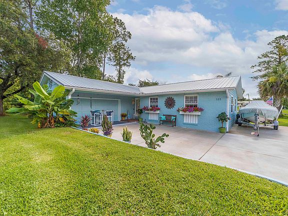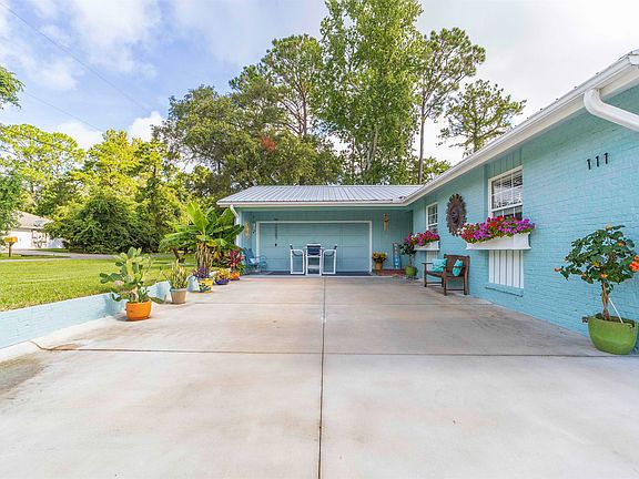 Introducing this spectacular 4-bedroom 2-bath contemporary style home located on an oversize lot in the highly sought after St Augustine South neighborhood. Custom upgrades galore. Open floor plan with floor-to-ceiling windows allow natural light throughout the living room and kitchen. Kitchen features custom cabinets, granite counter tops and all newer stainless-steel appliances complete with remaining 3-year warranty. Hardwood bamboo and tile through common areas, master and 1 bedroom-carpet. Maintenance free living, 4-year-old roof, A/C 3 years old, hot water heater in 2022, new sump pump in 2023, washer and dryer included, brand new poured driveway with room to park your boat, RV plus 4 cars. 12x24 shed/garage offers perfect storage space. 650 square foot wrap around deck offers a beautiful setting for gardening and outdoor enjoyment. In addition to 3 lots, lot to the north and east is owned by the county, perfect situation allowing you to use the property for an extended yard. Beautifully landscaped, the sellers are leaving several of the potted plants including the window planters. Brand new screened in porch overlooking nature preserve with new sliding glass doors with built-in blinds leading to the new screened porch. Bamboo in back yard will eventually grow to 15 ft. for added privacy. This site is loaded with privacy, must see to appreciate. Part of the garage was converted to living space, with added closet space, this room is a spacious office or 4th bedroom, and the remaining garage space easily fits a golf cart, bicycles and more... Extended concrete next to the home was added on and big enough to add a two car garage if needed. Laundry area is in the garage. Bonus garage refrigerator included. Nest thermostat and doorbell system. Custom upgraded blinds throughout. Wonderfully maintained and complete with termite bond this home is just minutes away from the intracoastal. St Augustine South offers miles and miles of walking, bike riding and golf cart strolling all along the intracoastal along with 2 boat ramps, a community center, tennis court, and a children's playground. St Augustine South is very convenient to shopping, the hospital, 15-minute drive to Downtown St Augustine and the beaches.