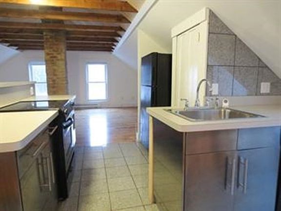 Modern, Bright and Open one bedroom loft style apartment in the center of Upton. Renovated and sparkles with gleaming hardwood floors, cathedral beamed ceilings, tile in kitchen and bath. Large living room, dining area with a closet and kitchen (with another closet) are all open to one another. Bedroom with beamed cathedral and cedar closet has access to a deck and view of the backyard. Laundry in unit. EZ access to Rt. 495 and just steps from restaurants, bank and shopping. Rent includes hot water, internet, yard maintenance, water & sewer and shoveling of common areas. No smoking.