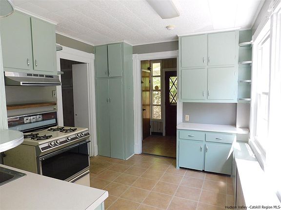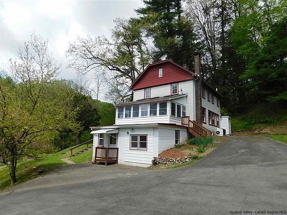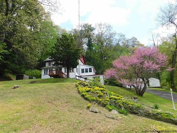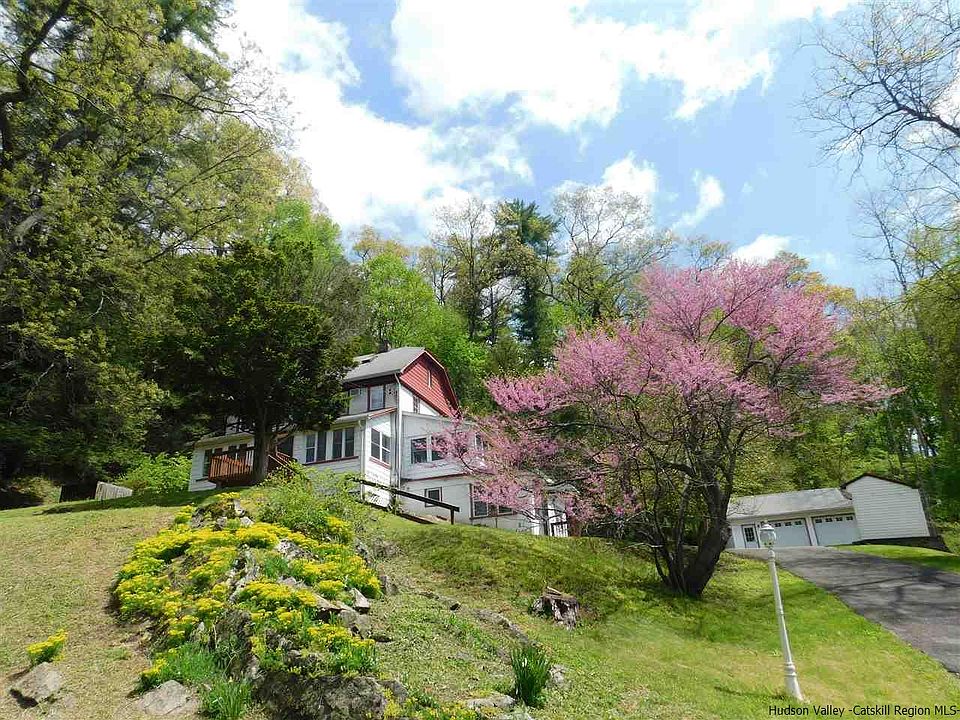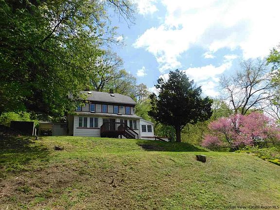 Charming 1910 farmhouse nicely sited in the quaint hamlet of Bloomington. Set way back from a quiet road on 3 acres and conveniently located between historic Kingston and New Paltz. This home has been nicely preserved and ready for new owners. This home has 3 bedrooms and 2 full bathrooms, great for large families and guests. The dining room and spacious living room are just off the country kitchen with beautiful stone fireplace. Original natural hardwood floors have been tastefully redone and are a mix of chestnut, tiger maple, red and white oak. All upgraded windows allow an abundance of natural light and a convenient finished walk-up attic for added space. Separate entrance leads to an in-law suite with kitchen, bath, bedroom and living room. The mechanicals are well-maintained and in good working order. Whole house generator, security system, shed and 2 car detached garage top off the list of amenities. Front and side covered porches allow you to enjoy privacy and seasonal mountain views of the Shawangunk Mountains. All this conveniently located to local farm stands, breweries, hiking and climbing in nearby Minnewaska State Park. Minutes to the the Rondout Harbor, town beach and boat launch offering miles of nature to enjoy boating, kayaking, fishing, etc. Easy access to NYS Thruway, minutes to Trailways bus route and short drive to the Village of Rosendale that offers fine dining and events. Perfect full-time or weekend retreat.
