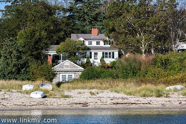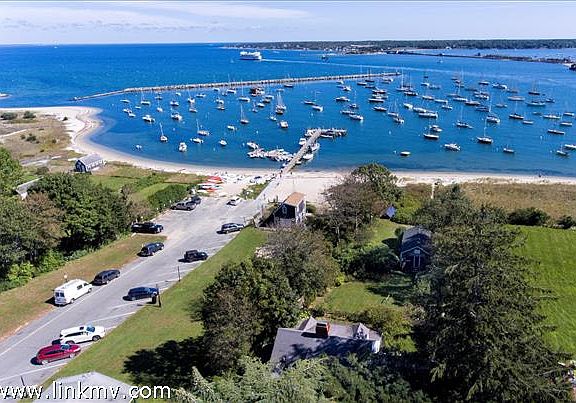 Tucked down an unassuming driveway and invisible from the street, this 19th century Cape is just steps from Vineyard Haven's year-round shopping and dining. Terrace after terrace unfolds as you descend toward the waterfront through the lovely 2/3-acre compound with separate guest house culminating in 68 feet of private beach on the inner harbor. Views of the harbor abound from inside the houses as well as throughout the gardens. The main house, built around 1825, has four bedrooms plus an office/bedroom, and three-and-a-half baths. Character-filled features include four fireplaces (two with remote controlled gas logs), refinished wide board floors, extensive wainscoting, broad-silled windows, and plaster walls and ceilings. The first floor owner’s bedroom includes an en-suite bathroom with separate vanities, marble tiled walk-in shower and radiant heated tile floor. A seven-bedroom septic was installed in 2013. The large porch with stunning harbor views has arched beadboard ceiling with recessed lighting, lattice, and an outdoor kitchen with sink, refrigerator, and ice maker. Outdoor entertaining is easy with the dining area for 8-10 as well as a separate sitting area. Near the beach is a charming guesthouse with natural wood walls and barrel-ceiling, brick fireplace, built-in bunkbeds and corner cabinets as well as a shower bath and kitchenette. The beachside deck for morning coffee or evening cocktails completes this harborside oasis. Enjoy the lush, mature gardens, raspberry patch and wildflower meadow as you meander from the main house to the guesthouse, fire pit and sand path to the beach. A secret gate provides access to Owen Park with its town wharf and gazebo. The peaceful private beach, perfect for crabbing, kayaking and contemplation, crowns this property where future memories are waiting to be made. A mooring is available right in front of the beach. The property boasts many extras: a garden shed, hidden goldfish pond, detached one-car garage plus parking for four more cars.