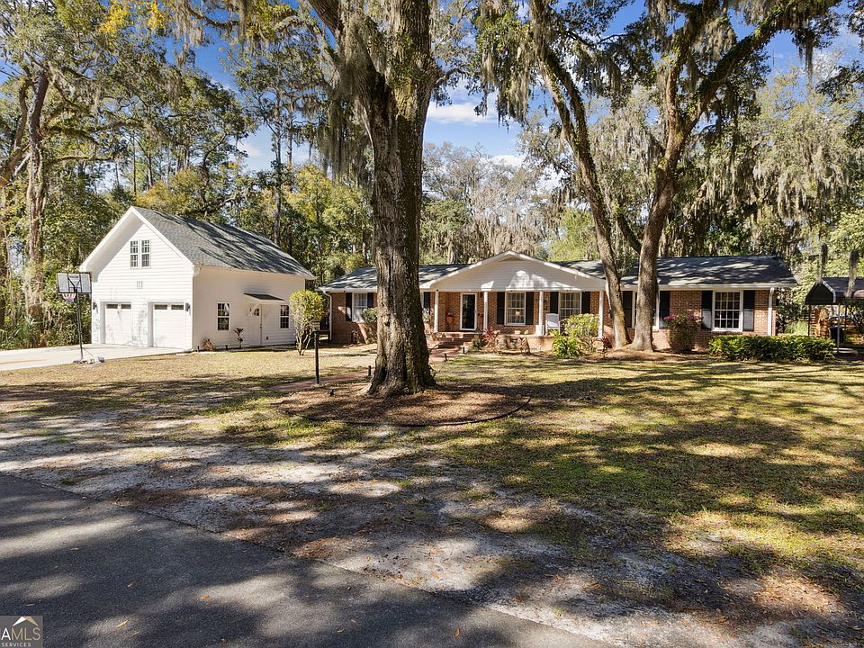 Welcome to this classic 1970's ranch-style home where you'll enjoy every charming aspect St. Marys has to offer. A short golf cart ride takes you to historic sites, the gorgeous waterfront, boat launch, fishing, restaurants, bars and shops! This picturesque Margaret street home sits on a half-acre, corner lot, where you're greeted with Spanish moss draped trees leading you to a front porch full of southern charm. Enter into a formal living room, separate dining room and wood flooring throughout! The current owners have modernized the kitchen expanding with an open concept to the great room. It includes a new large kitchen island, a six-foot commercial refrigerator, six-burner cooktop with dual oven, and new (Pinterest-worthy) butler's pantry for additional storage. You'll enjoy plenty of sunshine throughout the day in the great room with ample space to have additional dining or sitting areas. Enjoy cozy nights in front of a wood burning fireplace, beautiful built-ins and access to a large patio. Off the great room you'll find a separate bedroom with a bay window and ensuite bathroom. Step down from the kitchen into a flex space with more built-in bookshelves, a separate entrance that leads to the carport and laundry room. Two additional bedrooms with a hall bath, next to the primary bedroom with ensuite bathroom make up the remainder of the main home. ***Don't miss the separate garage with a loft-style apartment above! The apartment has a kitchenette, sitting area, separate sleeping area, bathroom with shower and laundry!***This home sits in an area where flood insurance is not mandatory.