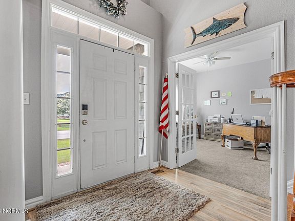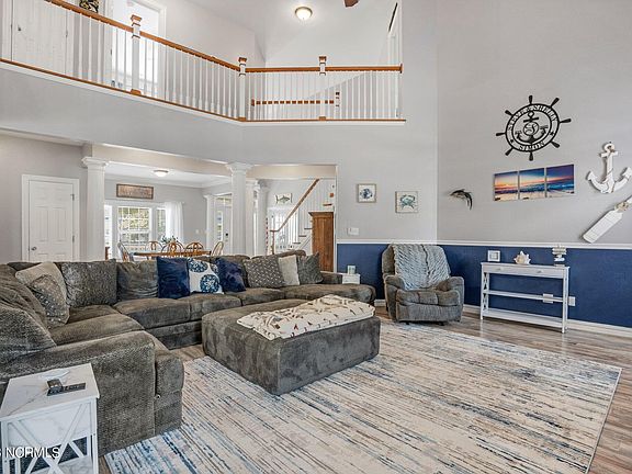 Come see this stunning, expansive RiversEdge haven on the Currituck Sound! Luxurious 1st-floor master bed, a private office, updated kitchen, and open floor plan. Unwind in the masters en suite with a jetted tub. Second floor offers 3 bedrooms including a junior suite/double bathroom, and a Finished Room Over Garage. All appliances convey as-is and barstools convey. Enjoy outdoor bliss with a saltwater pool in working order (conveys as-is) & water feature. Indulge in the community's boat ramp, dock, pier, gazebo area, tennis court, basketball court, and clubhouse. Your oasis awaits!
