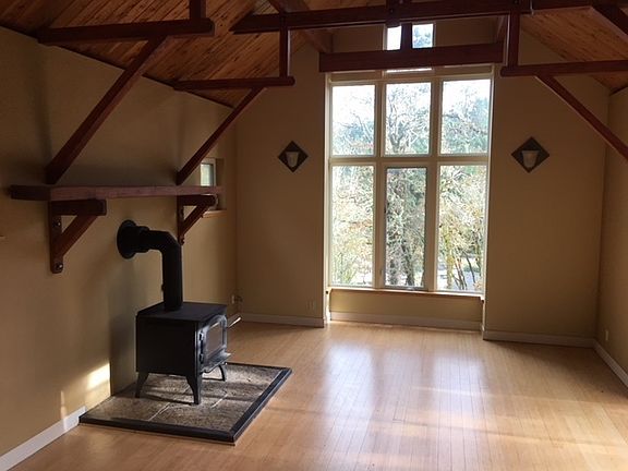 This unique and gorgeous home is truly special. 4 bedrooms and 3.5 bathrooms, 3 level home with a wooded and private setting. Slate and bamboo floors throughout home. Multiple balconies and extensive outdoor space. 2 car garage with built in storage. Additional storage space behind garage that is just waiting to be set up as a shop. Raised garden beds, pond, fire pit are just a few of the offerings the outside has for you! Open plan kitchen with concrete counters and stainless steel appliances. Vaulted ceiling in the living room with wood milled from the property and a wood burning fireplace. Master bedroom is the entire upper level. Additional family room is downstairs with small balcony overlooking the back yard. This property won't last long, so please contact us to tour today!