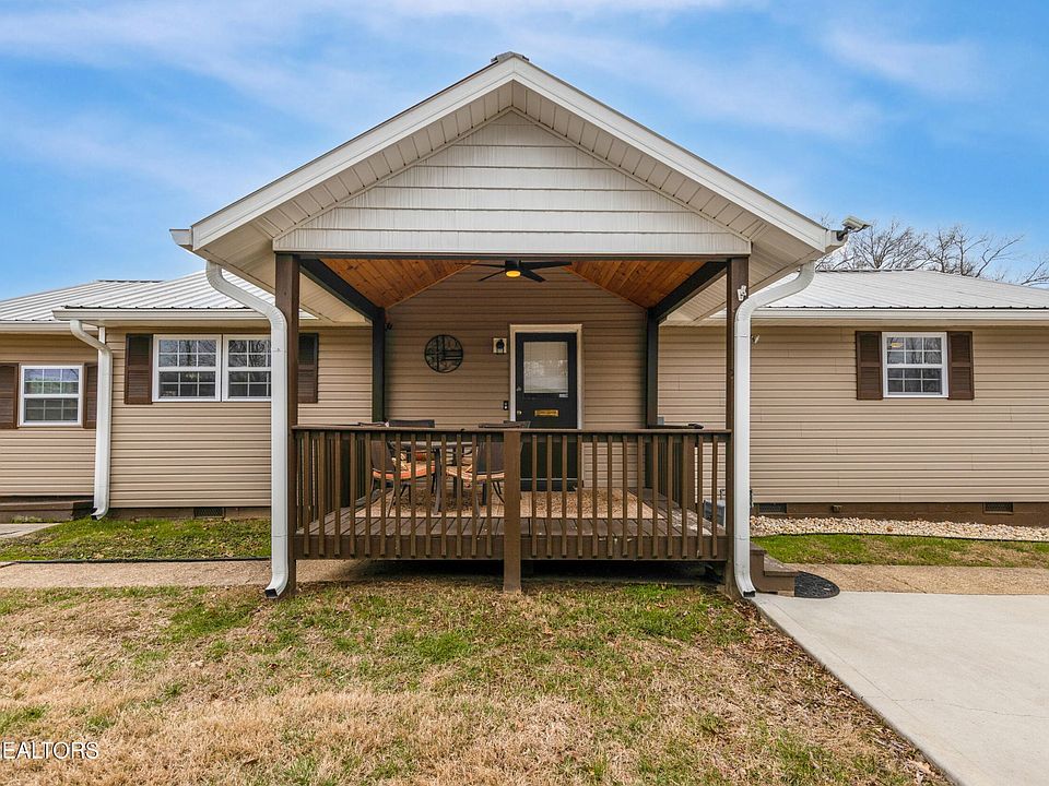 Recent updates (2022) include new vinyl siding, windows, a modern kitchen, gas stove, and dishwasher, plus an additional bathroom and dining/office space. Enjoy luxury vinyl plank flooring throughout—no carpet! The metal roof, HVAC, gas water heater, washer, and dryer are all newer, offering peace of mind.