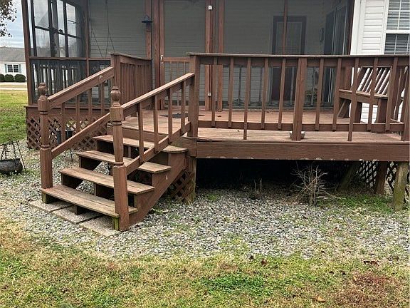 Perfect retirement or starter home located in the heart of Deltaville, great location. Large open lot in a quiet neighborhood within walking distance to Ricky Taylor Memorial pool, pickleball and tennis courts, local restaurants and short distance to local marinas. Beautiful mature tree in back yard to provide shade for outside activities. Screened in porch and deck overlook large backyard. Only 1 occupant since being built.