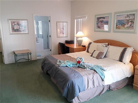 This spacious pool home is located near a golf course and has access to a 400 acre lake. Disney is less than 20 minutes away and there are restaurants galore located nearby. Walk to a Pub, or a Sub shop. Situated on a quiet cul-de-sac, this has been a holiday home that has always been well maintained and is furnished. It has 102 nights of rentals for next year and has averaged over 37 weeks per year occupancy. It would also make an ideal family home. Everyone can use the community pool, tennis, basketball, or enjoy the views from the dock with boat access. Low Home Owners Association fees, with great neighbors and seasonal activities are something to appreciate. This house is the very popular Cancun floor plan. The family room and fully tiled kitchen/dining area are open plan with sliding doors onto the covered lanai. The utility room houses a new washer and dryer. New roof 2016. New pool heater 2017. New pool pump 2015. Pool resurfaced with new filter, timer and thermostat 2016. New pool cage screens and framework cleaned spotless 2017. Fresh exterior paint 2017. New air conditioner 2014 and furnace, blower and circuit in 2016. The water heater was replaced in March 2017. Extra air conditioning vent added to master suite in 2017. All the big ticket maintenance issues have been attended to! The pride of ownership found at this property can benefit you and yours with no hassle, or expenses for many years to come. Don't let this one pass you by, you are invited to see for yourself!