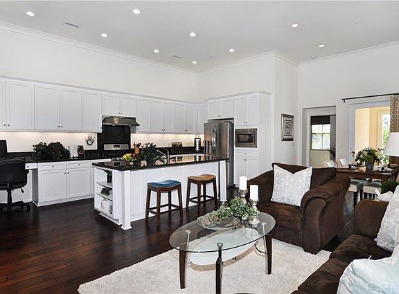 This absolutely gorgeous 2 Bedroom / 2 Bath Townhome is a highly sought-after floor plan (Plan 2) in the Santa Clara enclave of Stonegate where it is quiet and peaceful. This ideal floor plan has 2 bedrooms on opposite sides of the home to accommodate privacy for guests, an office, or roommates. Bright with sunlight shining through every window, inside you'll be embraced with custom paint throughout and luxurious hardwood flooring in the main living area and plush carpeting in each bedroom. Inside this well appointed home, you'll find a spacious great room with dramatic, extra hight 12ft ceilings that will easily entertain family and guests. Also, step out onto the private balcony over to read a book for a peaceful and quiet afternoon. Rediscover cooking in this gourmet kitchen with upgraded stainless steel appliances. This home also offers UPGRADED granite counter tops and cabinetry. Take a quick trip to the Woodbury Town center for a cup of coffee and shopping. Feeds into the award winning schools, Stonegate Elementary, Jeffrey Trail Middle School, and Northwood High School. Close to hiking trails and the OC Great Park where you can enjoy tons of family focused events and the weekly Farmer's market.
