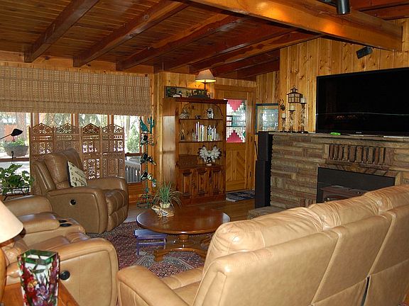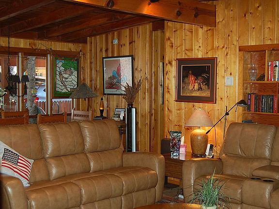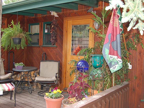 All One Level, Fabulous Mountain home features 3 bedrooms,3 Bath, (Study could be 4th) Master w/ f/p, Sunroom or Family Room w/ wood stove, stone floors. Marvin windows, metal roof, Living has stone fireplace w/Blower, Original wood beadboard gives that cabin feel so you know you’re in the Upper Canyon; has the quality build that makes the difference. Many upgrades, hardwood floors, hot tub, tranquil outside areas, landscaped, outdoor lighting, privacy fence, carport, storage shed, extra parking, RV parking with 50 amp. Home is great for entertaining but not to formal, 2200 sq.ft., skylights, great built -ins, floor to ceiling wood,on one and a half lots, this one has it all. Call today !
