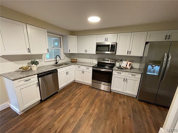 Welcome to this beautifully renovated 3 bedroom, 2 full bath Raised Ranch just brimming with natural light and charm. Enjoy the views of the backyard from your kitchen sink or from the elevated four season Florida room during those summer parties, with a patio perfectly positioned for an outdoor entertainment setup and a fully fenced in yard for privacy. Super conveniently located just off of W Genesee St, you have nearly every amenity imaginable just minutes away from your front door. Brand new vinyl flooring, new matching stainless steel kitchen appliances, recently updated furnace, hot water heater, and air conditioner mean all of the heavy lifting has been done for you. Beautiful bay window in the living room brings the main floor to life, and the convenience of a partially finished basement with wood burning fireplace and attached two-car garage just adds to the comfort and functionality of this home. Possibility for lower level bedroom. Westhill school district. Come see what clean, comfortable, convenient living awaits you at 111 Meadow Rd… book your showing today!