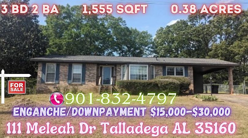 Se Vende Dueño a Dueño- Owner Financing Available 15K Enganche-DownPayment Conveniently located in Talladega, this home is just minutes away from Talladega College, downtown shopping, restaurants, and local parks. Easy access to Highway 21 and I-20 makes commuting to nearby cities like Birmingham and Anniston a breeze. This property is For Sale by Owner, so don't miss the chance to make this beautiful house your new home.