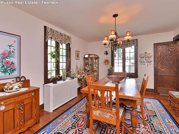 Charming Cotswold Tudor. Lovely street. Fabulous chestnut woodwork. Hardwood floors. Tiled entry room/Reading Rm. Living Rm/fplc. Formal Dining rm.Updated kit/brkfst.rm. 2nd fl: 3 bedrooms. Updated full bath. Game Rm.(hardwood floor) bth. Workshop. Det. gar. Beautiful flowering gardens.Newer gas furance Cent.Air. Newer h/w tank. Playhouse/shed. 2 car garage. Close to Cedar Ln shops/buses/schools & hses of worship. For more information about this listing, please contact Lydia Russo, at Russo Real Estate / Teaneck, (201) 837-8800