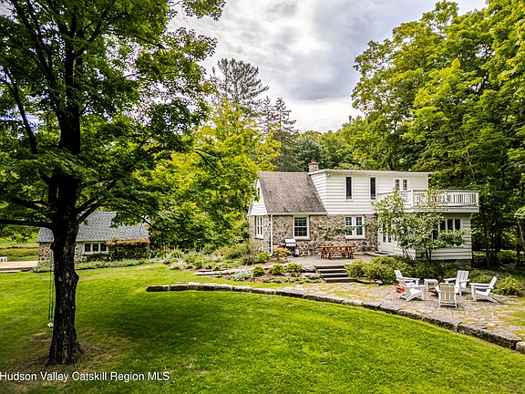 Welcome to Kanso Cottage Estate, a historic Hudson Valley retreat with roots stretching back to the late 1800s. Once part of a boys' camp and originally built by Dutch settlers, this park-like 16-acre estate in Churchtown includes three dwellings-the stone main house, a stone guest cottage, and a green guest cabin-along with additional structures including a pool house with outdoor shower and a potting shed. Rolling hills with fruit trees, terraced gardens, and a seasonal stream, lead to a heated gunite pool and a half basketball court. Set on a quiet road that loops through picturesque farmland, the enchanting property has been reimagined for modern living while retaining its timeless character.