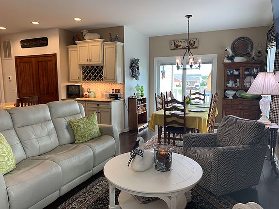 Welcome to Bridgewater (and bring your golfcart)! Custom built duplex on one of the largest lots in Mill View Estates offering .32 acre; fully fenced with gazebo, areas to entertain or relax, and country views. This home boasts many upgrades throughout. Hand-scraped hardwood floors, travertine tile flooring in baths and laundry, custom cabinets, granite counter tops, large kitchen island with built-in microwave drawer and copper sink, bar area with beverage refrigerator, stone fireplace with gas logs, covered rear deck. Large master bedroom with private bath. 2nd bedroom and bath and additional room great for guests or home office. Bosch Heat Pump. Extra storage in garage and large climate-controlled crawl space.