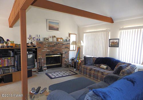 This two bedroom two bath salt box with a large screen porch and rear deck, fireplace, cathedral ceilings is Located in a private community with access to six lakes, two outdoor pools w/tennis, indoor clubhouse with pool and sauna, and access to State Land.