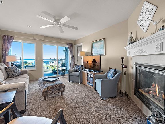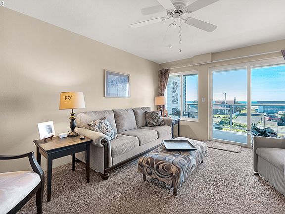 Welcome to your dream coastal getaway! This 2 bed, 2 bath condo offers stunning ocean views. Located in a secure building with covered parking, ramped access, enclosed access to each unit and an elevator. The open-concept living area is great for ocean whale watching from nearly every space in the home.  With a cozy fireplace, a private balcony, and large windows showcasing breathtaking views of the ocean, Tillamook Head and the Seaside Cove. Both bedrooms have en suite bathrooms and the primary bedroom has not one, but two spacious closets. Claim a place of your very own on the Oregon Coast. Monthly HOA for this unit is $347 Condo Dues Pay WiFi, Basic Cable TV, Exterior Maintenance, Gas, Water/Sewer, Garbage, and Common Area Maintenance.  With no rentals allowed in the building, this is one of the few condos in West Seaside that will may be purchased with conventional financing.
