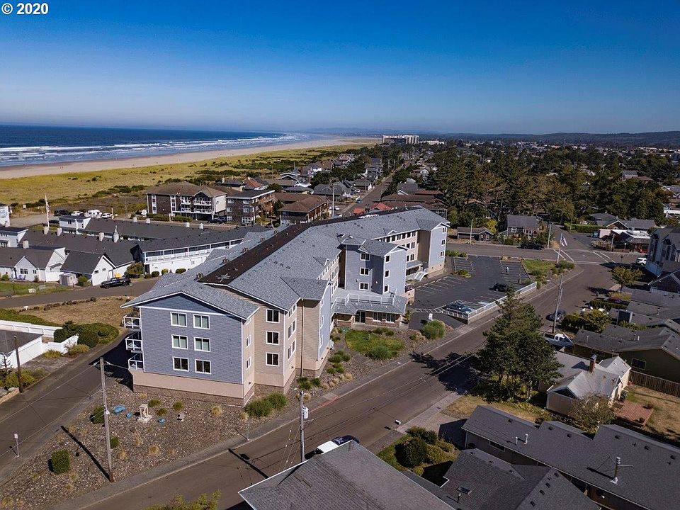 A rare opportunity. A second floor two bedroom condo at the Mirage on Ave. U with views of the cove and Tillamook head. One block off the beach. Interior elevator in secure building. Morning sun shines into the wide hallways and tastefully decorated nooks. The condo has had modifications and upgrades to allow for a more private master bedroom and master bath as well as a larger laundry room. Make an appointment for viewing. No Vacation or long term rental allowed per HOA