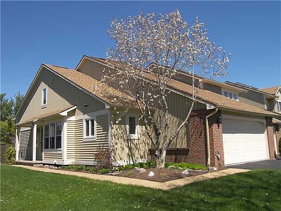 End Unit Cape w/1st floor master bedroom suite. 2nd Floor w/2 bedrooms plus spacious loft. Living Room w/cathedral ceilings, 2 skylights, gas fireplace. Open loft w/skylight overlooks 1st floor. Hardwood floors in kitchen and formal dining room. New furnace & C/A 2006. Many new vinyl replacement windows. Sauna in basement included (currently not used). Sliding glass doors lead to a private patio w/paver stones and beautifully landscaped yard.