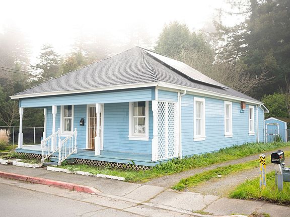 This lovely Home in Rio Dell is right off of Wildwood, so close to all the stores and walking into town. The house features SOLAR PANELS FOR A HUGE REDUCTION IN ELECTRICITY COST, large front porch, open living room with lots of light. Three good size rooms with high ceilings, lots of natural light from the windows. The main bathroom features shower/tub combo, lots of cabinet space and room, there is half bathroom off the laundry room in the back. The kitchen features tall cabinets, lots of counter space, so much storage in that area to work with, right next to the laundry room part mud room. The back yard is fully fenced. The sheds are not part of the property for use.