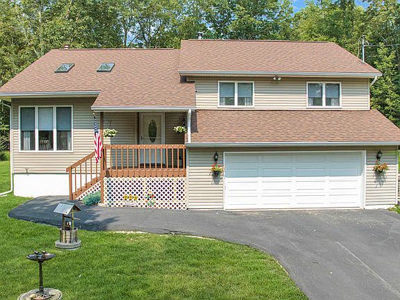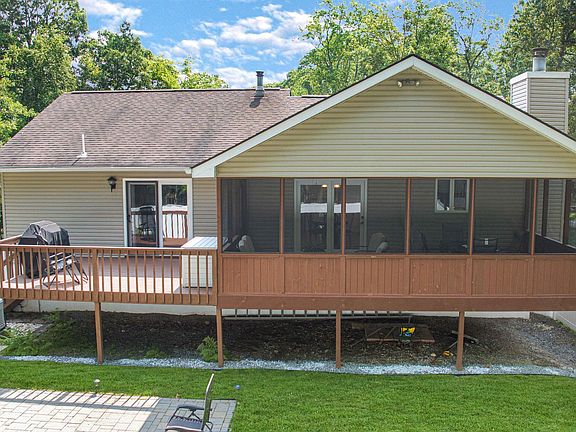This stunning 4-bedroom bi-level home, backing up to over 2,000 acres of state land, sits on a beautiful 1.27-acre parcel. The interior features cathedral ceilings, hardwood floors, and central air conditioning throughout. The eat-in kitchen boasts stainless steel appliances, granite countertops, and views of the lower two-story living room. The spacious formal dining room opens to a screened-in porch and a deck, perfect for outdoor entertaining. The main floor includes a primary suite with a spa-like tiled bathroom and double vanities, along with two additional large bedrooms and a beautifully tiled guest bathroom with a soaking tub. The lower level offers a cozy family room with a wood burning fireplace, a fourth bedroom, a third full bathroom, and a laundry room. The home is equipped with a whole-home generator, ensuring comfort and security year-round. Additional features include an attached garage and access to community amenities like lakes, a beach, restaurant and more. Located near hiking trails, skiing, and the Delaware River, and just a stone's throw from downtown historic Milford, this home is within the desirable Delaware Valley School District.