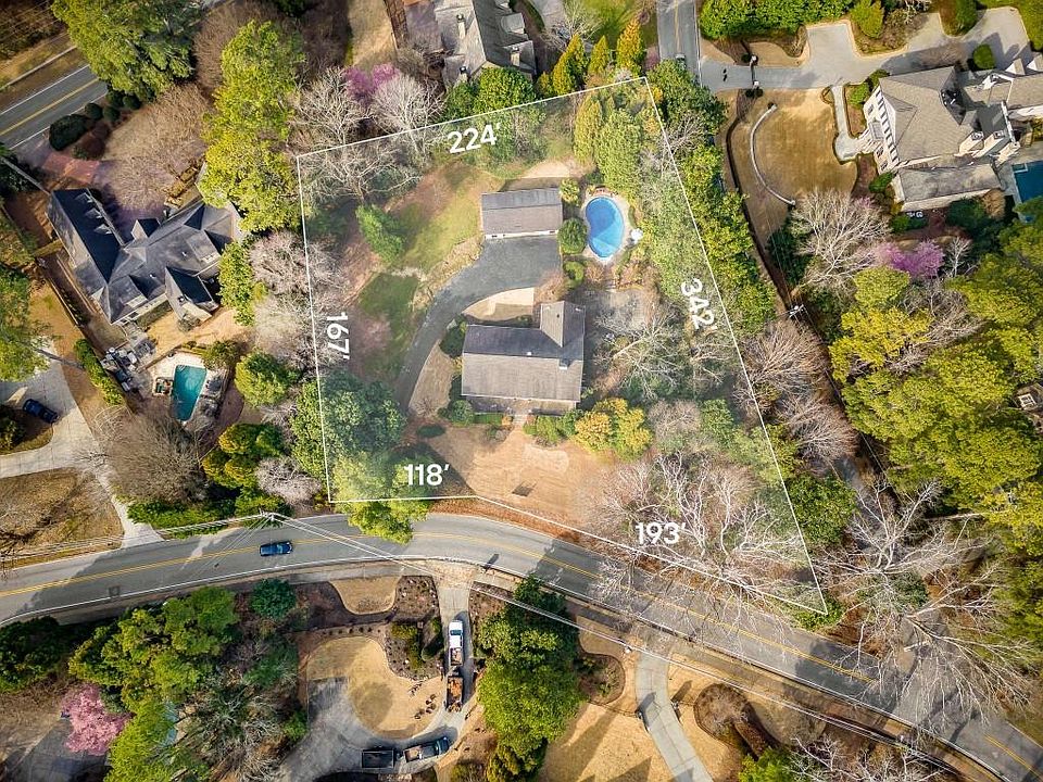 RARE Opportunity to own a lovely corner-lot, cape cod-style home on 1.03 flat, manicured acres OR Build your own Dream House! This Mt. Paran brick charmer provides you the perfect new-build opportunity OR house expansion/renovation project. Conveniently located 2 miles from Chastain Park. Large 2-Car detached garage with 2 large storage rooms. Large terraced patio overlooking pool. Flat, secluded property is perfectly suited for new construction. The level, landscaped lot provides an abundance of privacy. Heards Ferry Elementary and LOW Sandy Springs Taxes.
